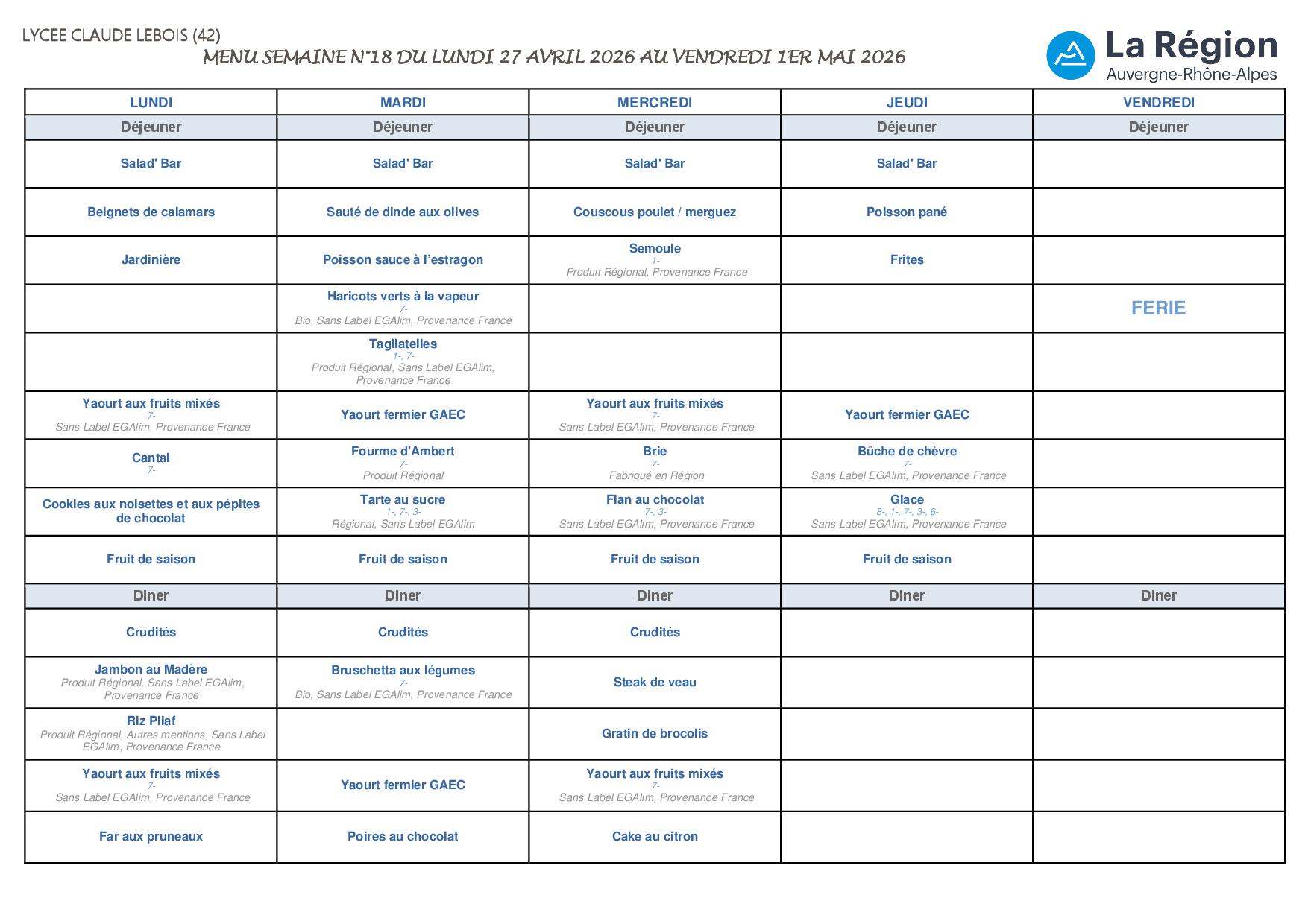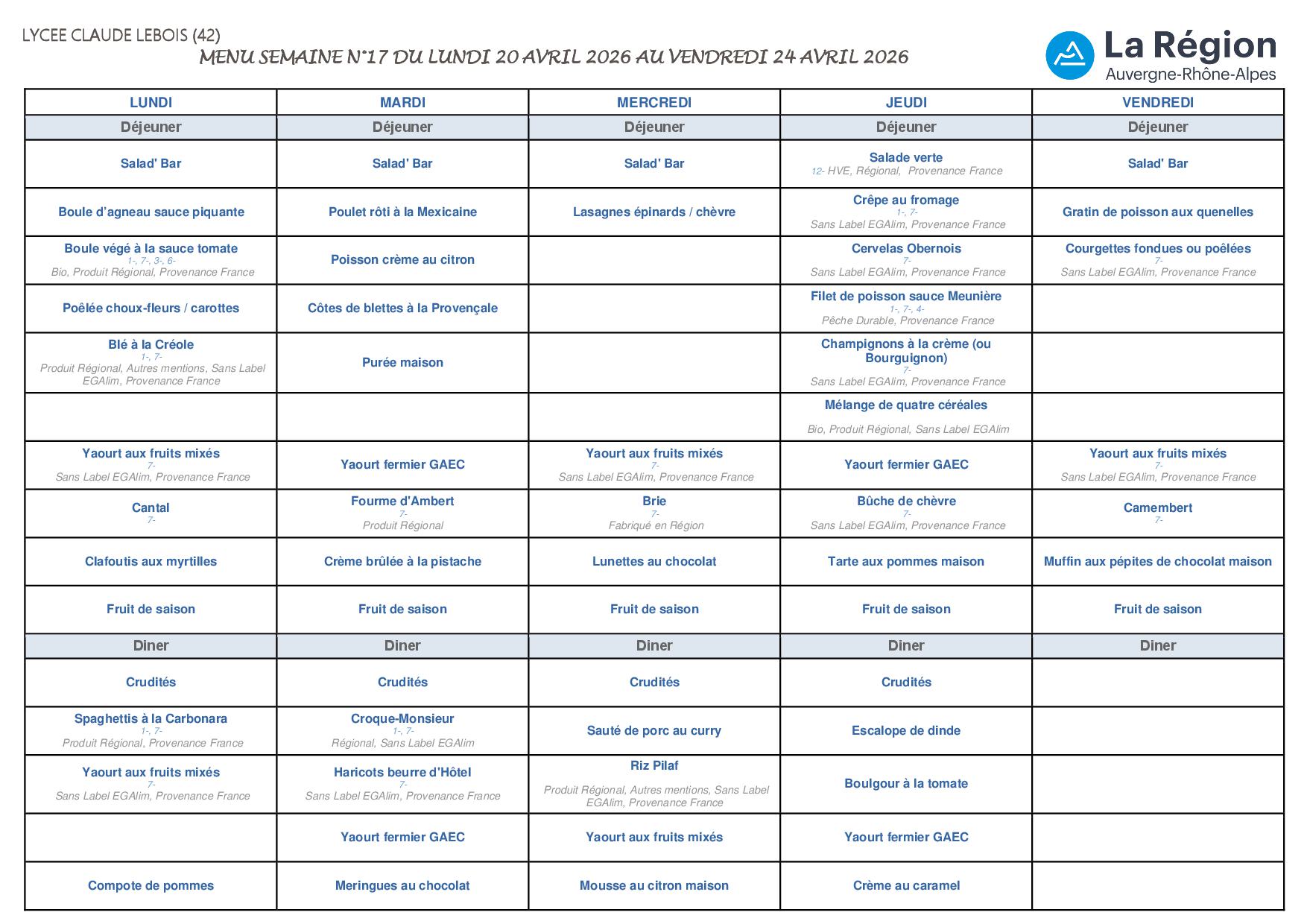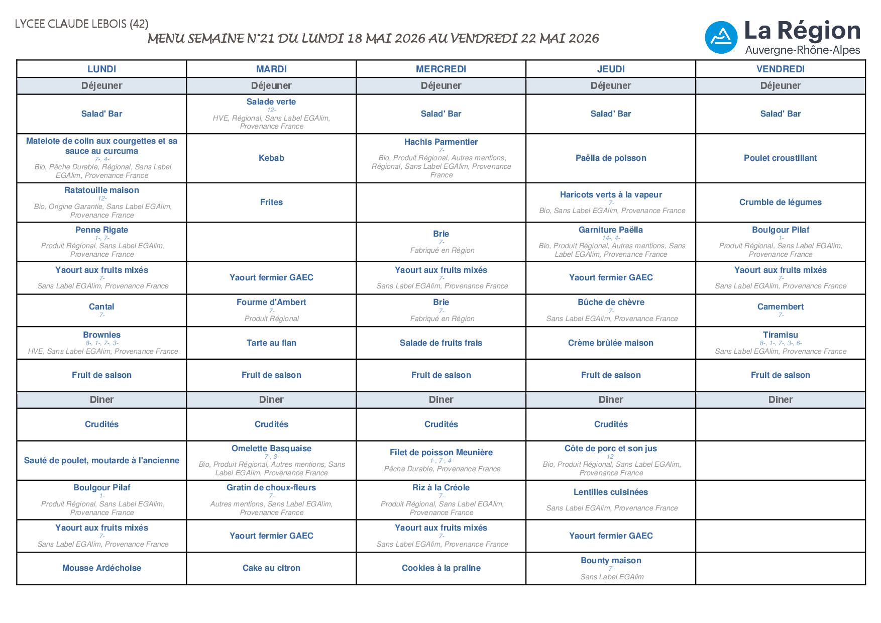 Les menus proposés aux élèves de l'école de la Croix Berthaud sont disponibles sur le site Internet de la Mairie de Saint-Chamond :