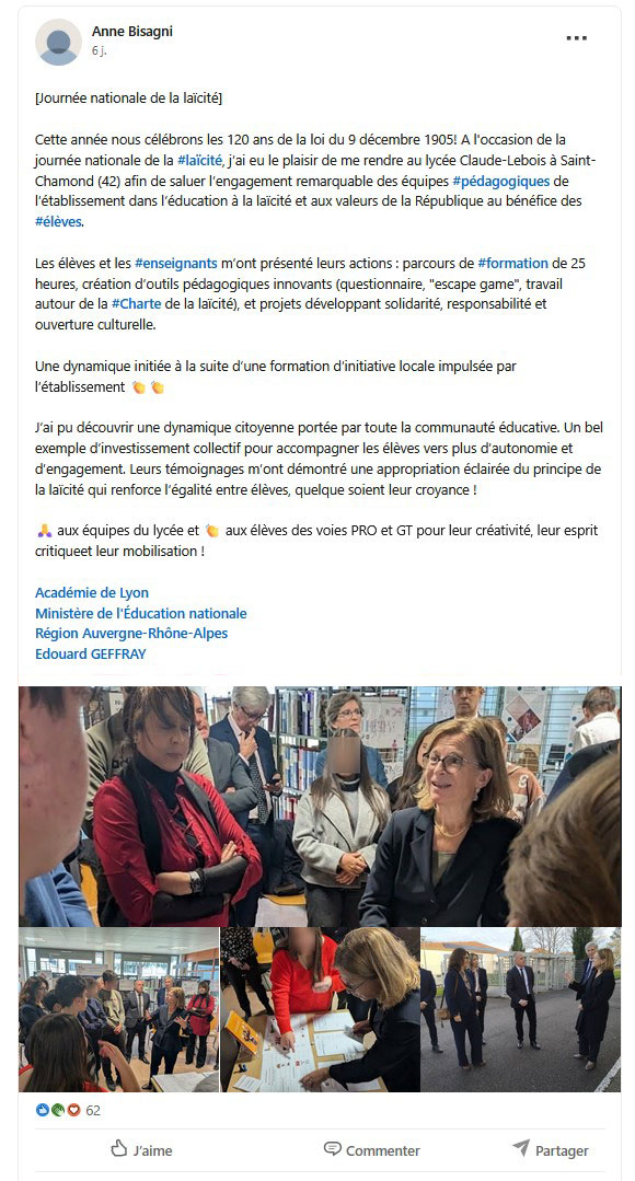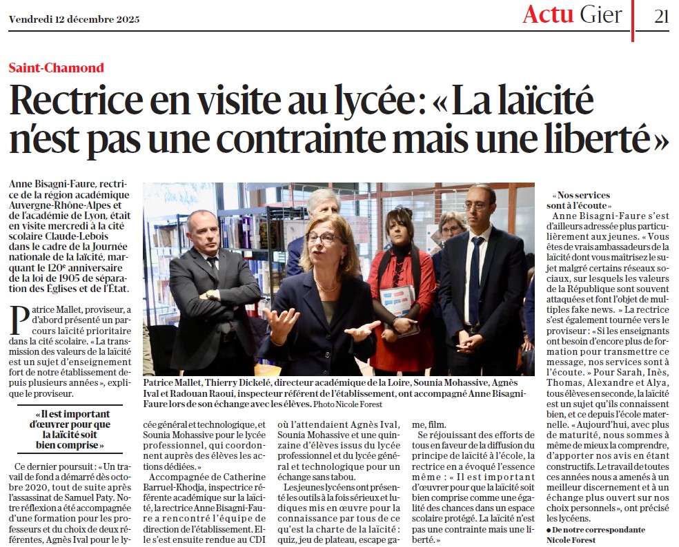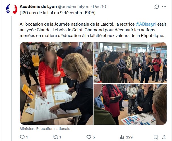 Article sur le compte X de l'Académie de Lyon (10/12/2025)